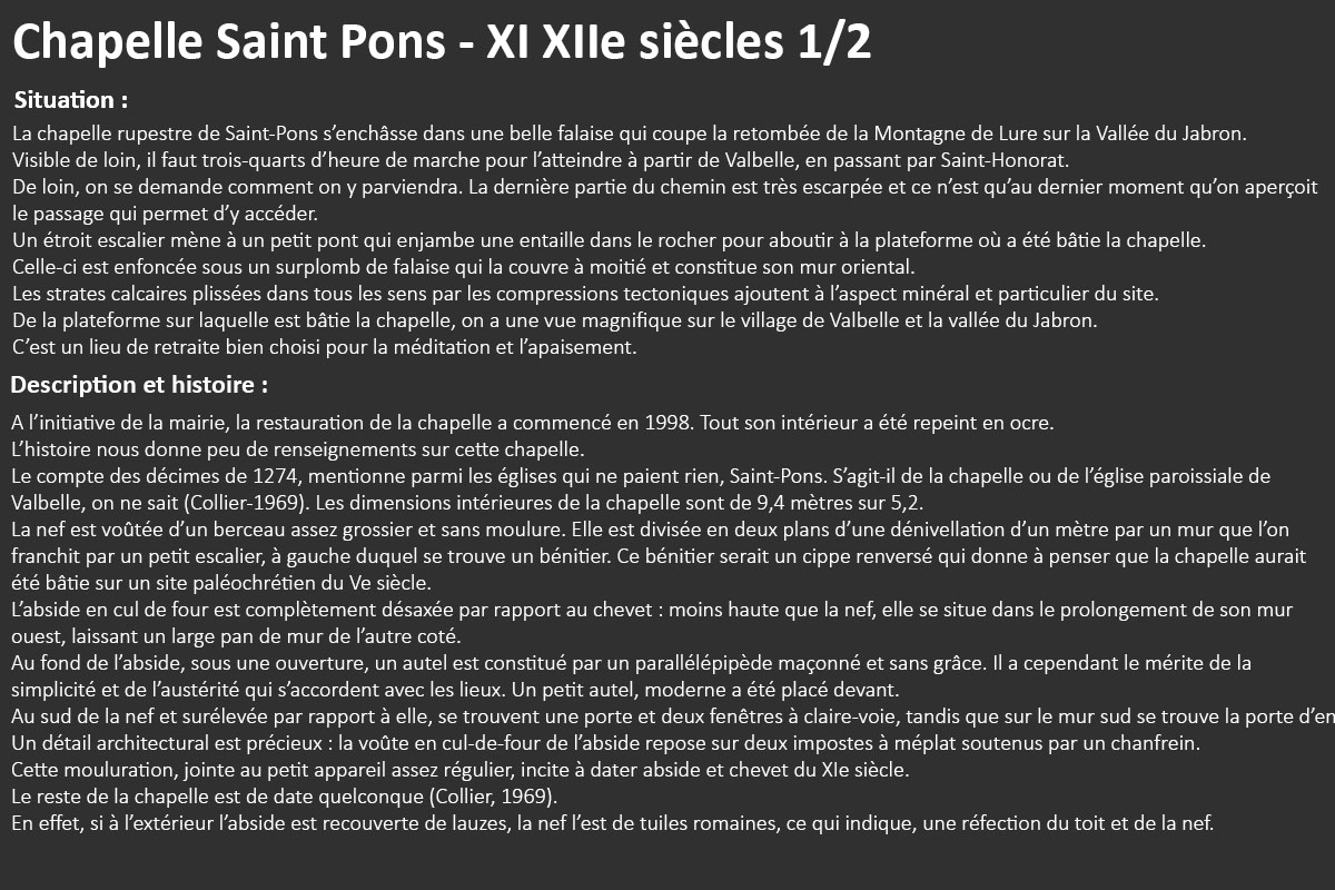 1Chapelle Saint-Pons - XIIe Au départ de Valbelle hameau des Escoffiers