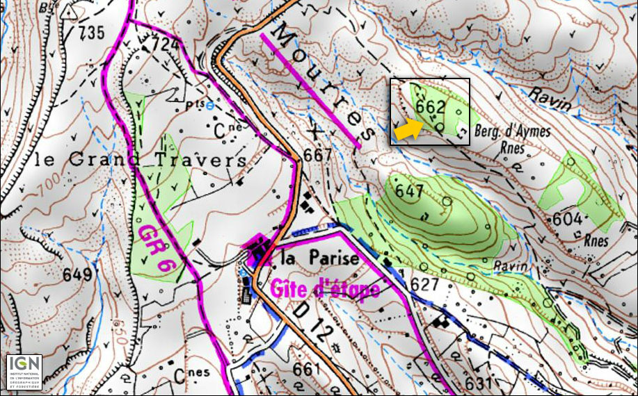 1 Borie à L'Est des Mourres Plan de situation - IGN Géoportail |
