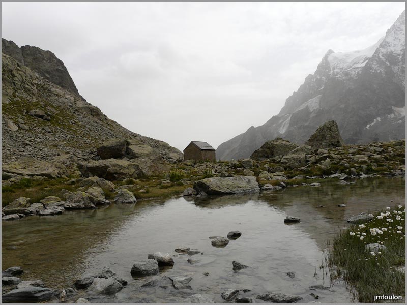 Lac Tuckett et le refuge sous la bruine