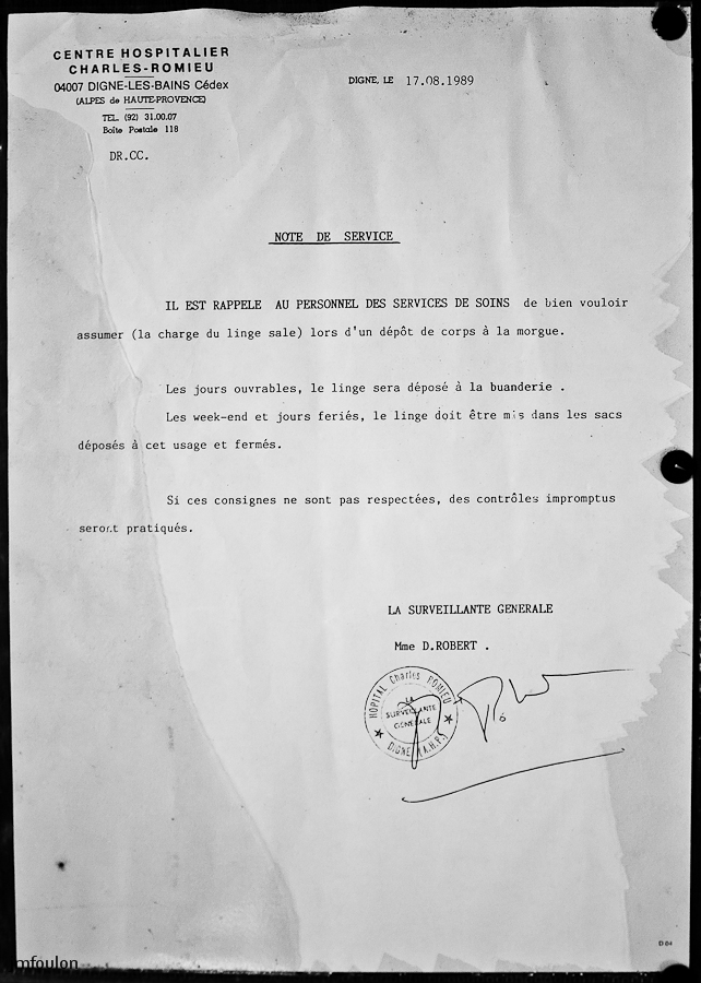 Note de service encore accrochée sur un mur (1989)