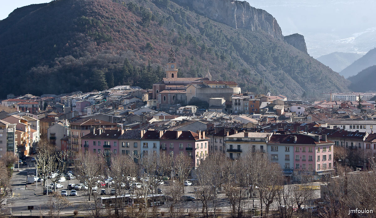 Vue sur la ville de Digne-les-Bains. Ici la cathédrale Saint Jerome et la prison, ou se trouvait jadis le château médiéval