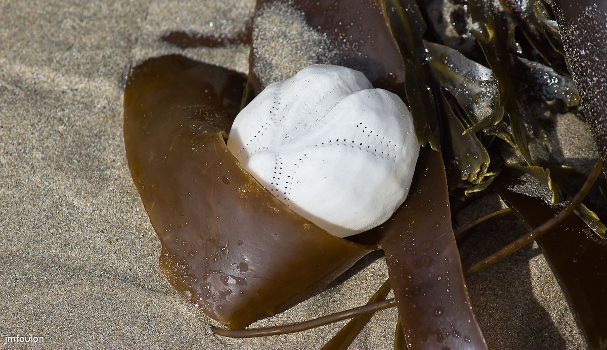 Squelette d'oursin sur une Laminaire