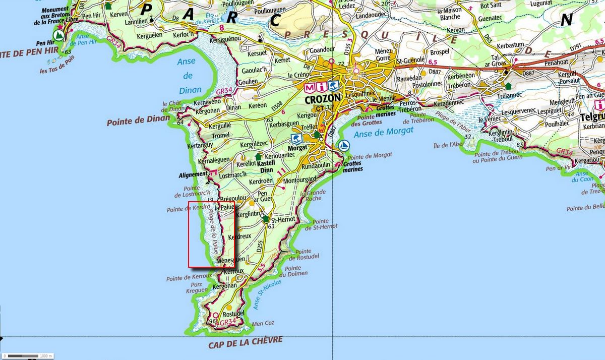 La plage de la Palue est une des plus belles plages sauvages de Bretagne. Sur cette plage se retrouvent les amateurs de surf, bodyboard, Kitesurf et les amoureux de grands espaces. La baignade y est interdite car les piscines naturelles forment des baînes à marée montante . Elle est exposé plein Ouest face à la mer d'Iroise.