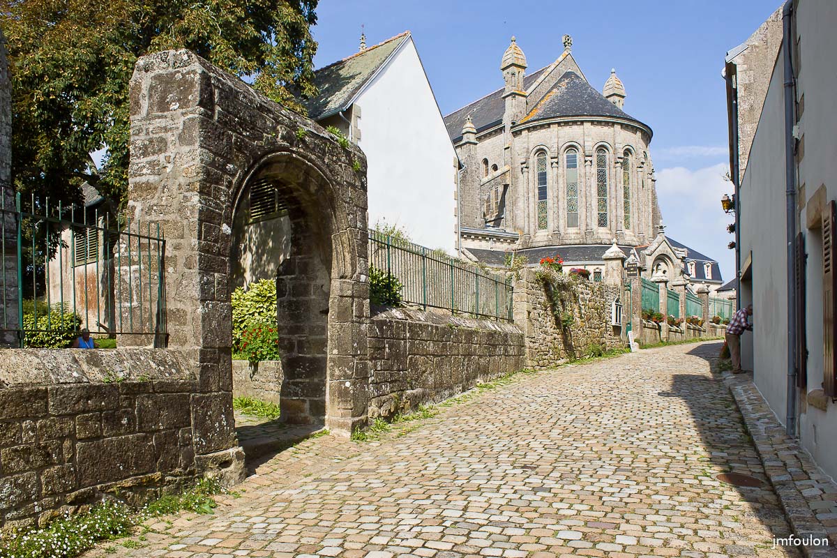 10Pont-Croix Eglise (collégiale) Notre-Dame de Roscudon (XIIème siècle). Au fond, l'a chapelle St Vincent de l'ancien Petit Séminaire