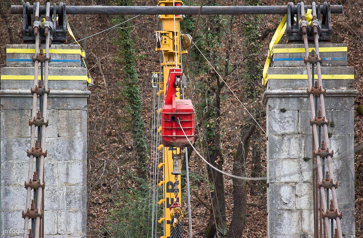 Comme on peut le voir, les tiges reliant le tablier aux cables sont en partie découpées