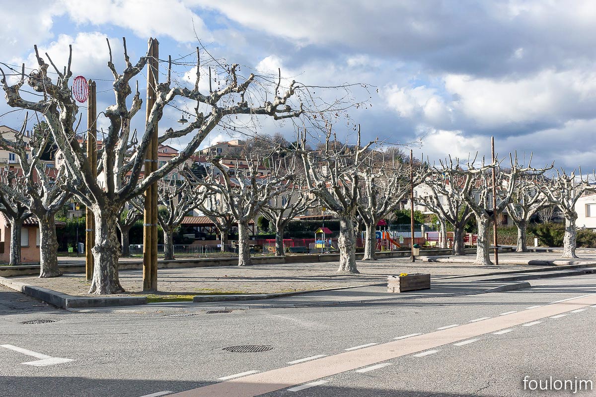 16Le Poët - Hautes Alpes Place aux platanes et terrain de boules - Route Napoléon ...