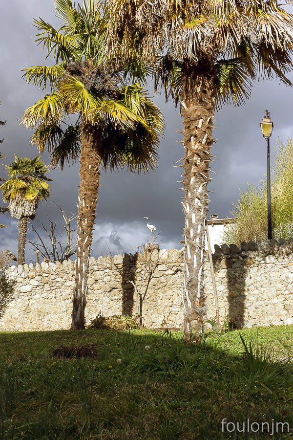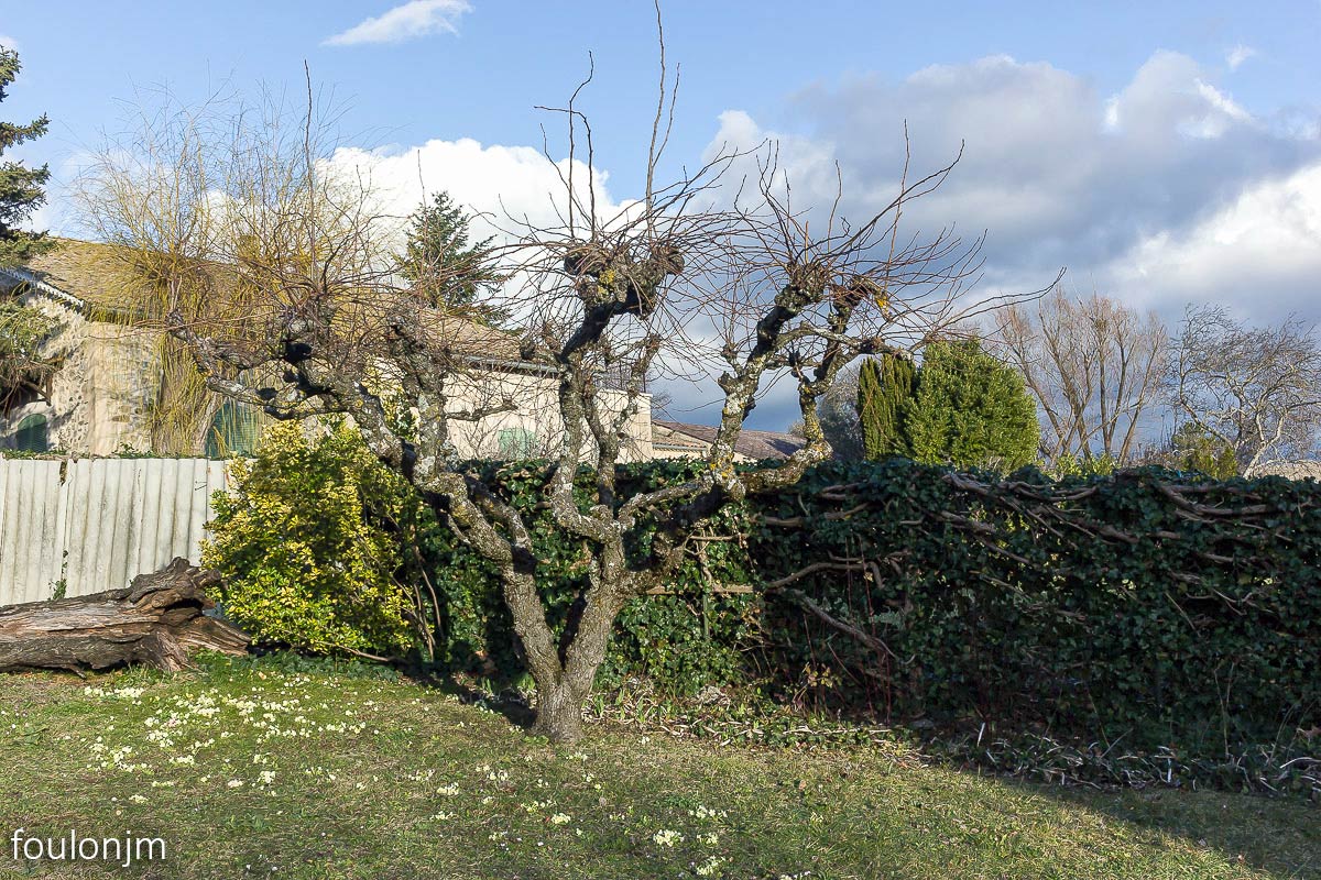 52Le Poët - Hautes Alpes Petit jardin derrière l'église. Le sol est couvert de primevères, prémices du printemps ...