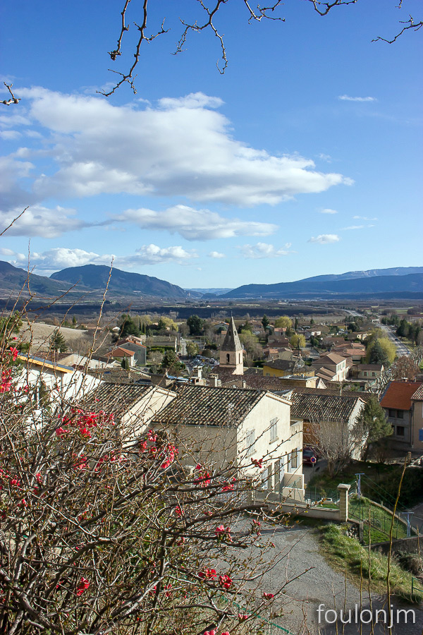 25Le Poët - Hautes Alpes Vue vers le Sud depuis l'Horloge. Au loin à gauche, La montagne de la Baume, a droite celle du Molard, entre les deux Sisteron et sa clue formée par la Durance ...