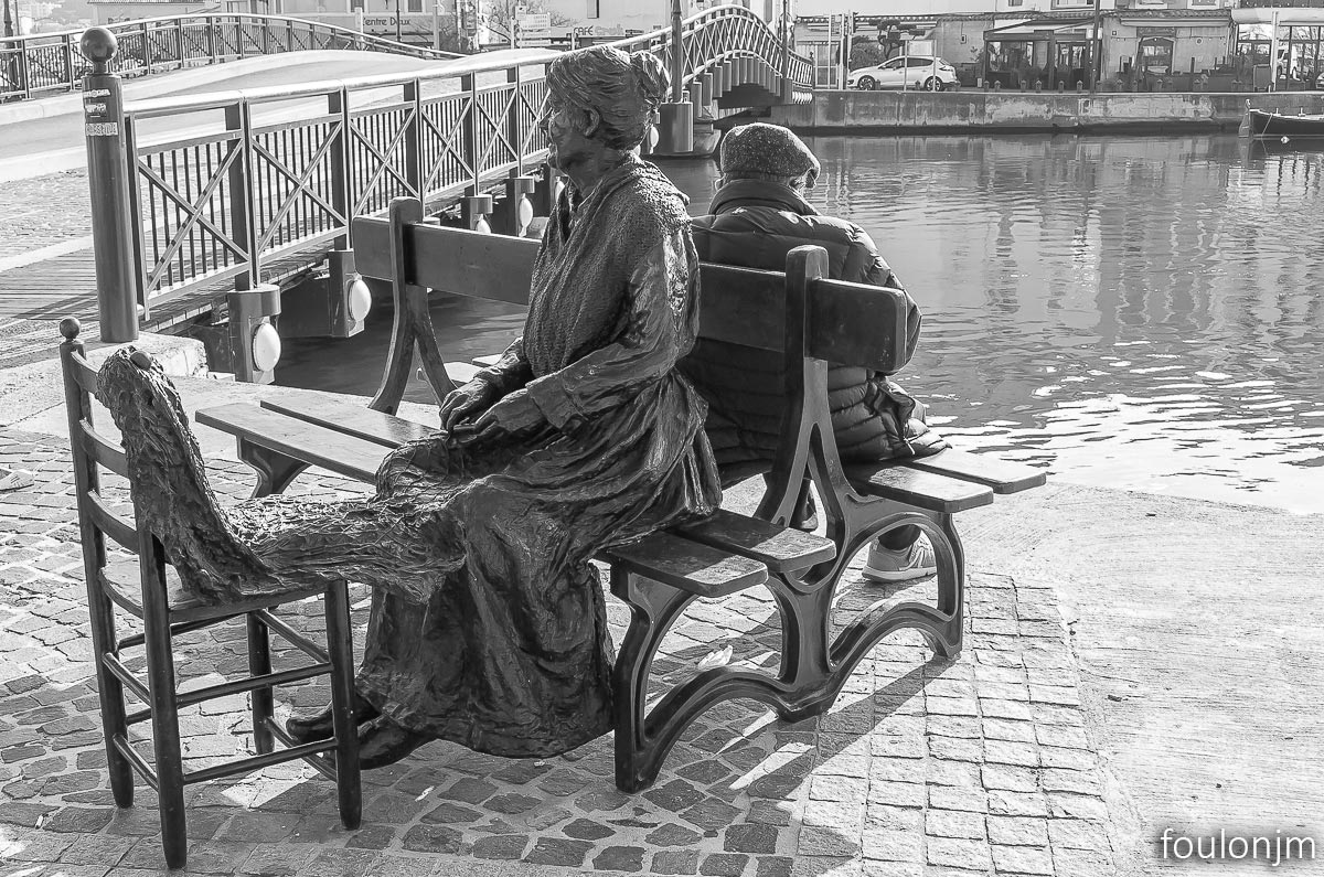 7Martigues - L'île Sculpture en bronze installée sur le port de Martigues-Ferrières. Créée en 2010 par Sébastien Langloys. Elle représente un pêcheur et une remailleuse de filet du début du XX.
