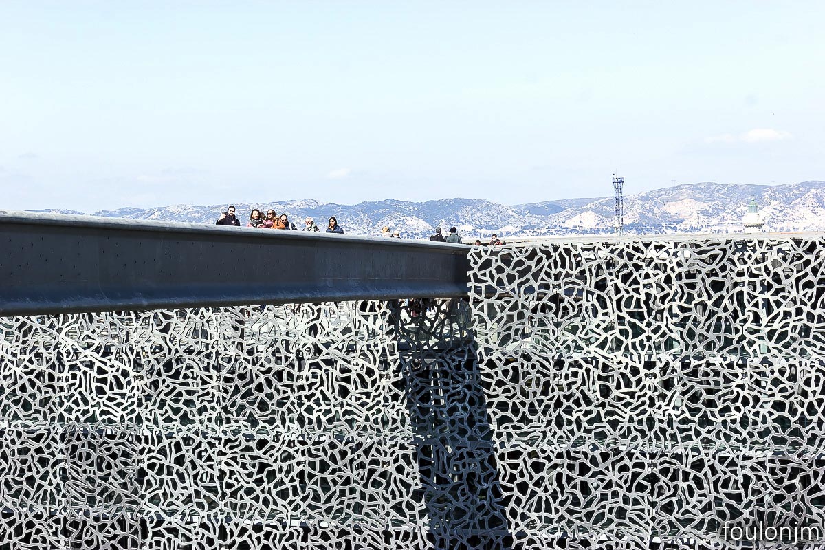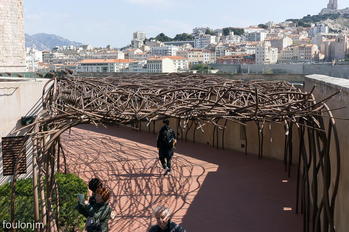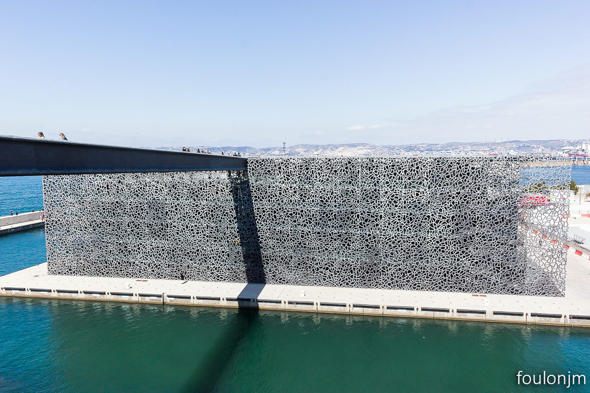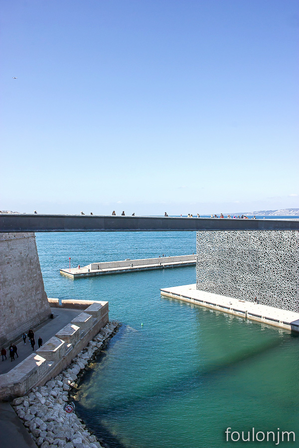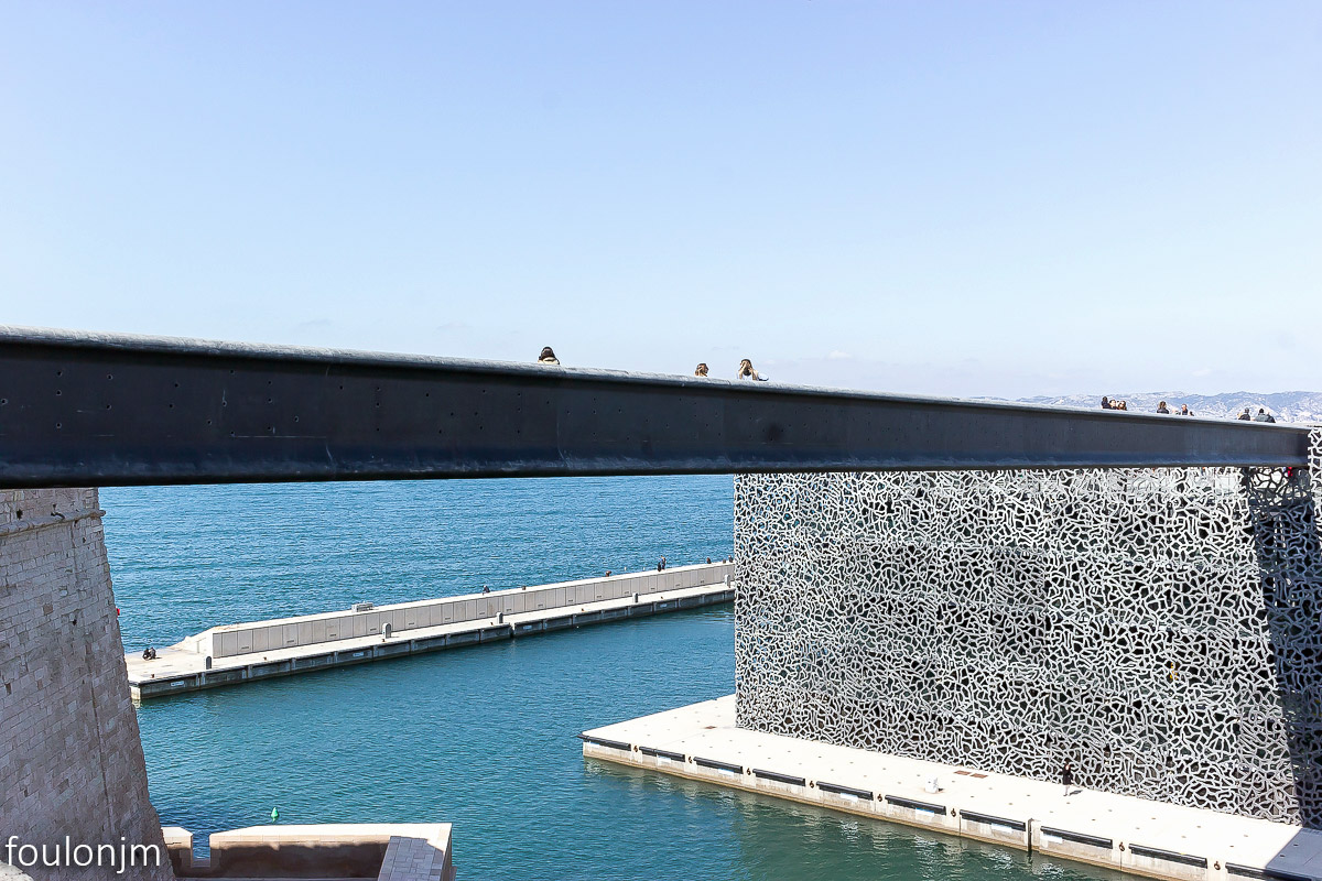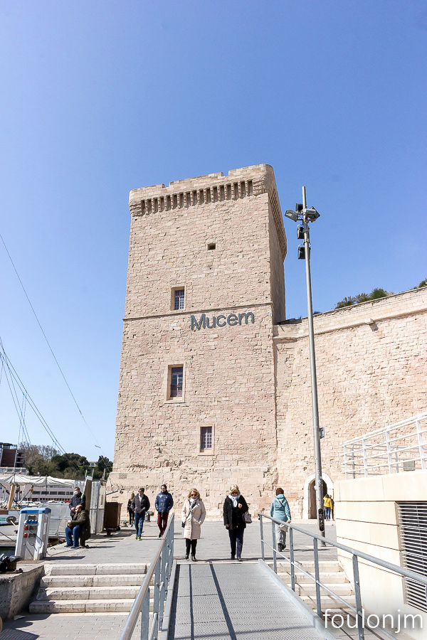 Mucem - Musée des civilisations de l'Europe et de la Méditerranée et le fort Saint Jean. Architecte : Rudy Ricciotti. Il a été inauguré par le président François Hollande, le 7 juin 2013, alors que Marseille était capitale européenne de la culture. Actuellement, formidable expo sur l'histoire du SIDA "L’épidémie n’est pas finie !" Le fort Saint Jean. Bâti au XIVe siècle du temps du Roy René, il a été pensé pour protéger la ville et le port des attaques maritimes. Cette citadelle était aussi le quartier général des Hospitaliers de l'ordre Saint Jean au temps des Croisades.
