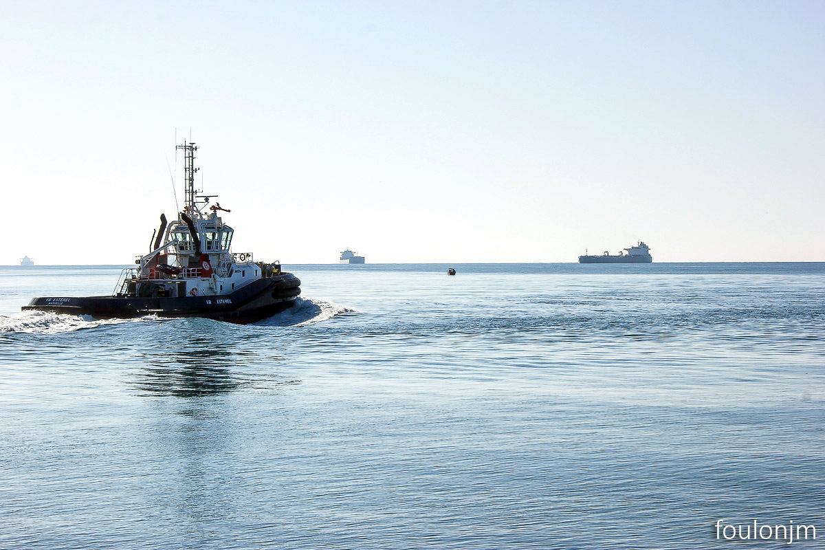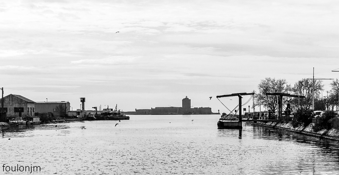 Sortie du chenal de Caronte. Au loin le fort de Bouc