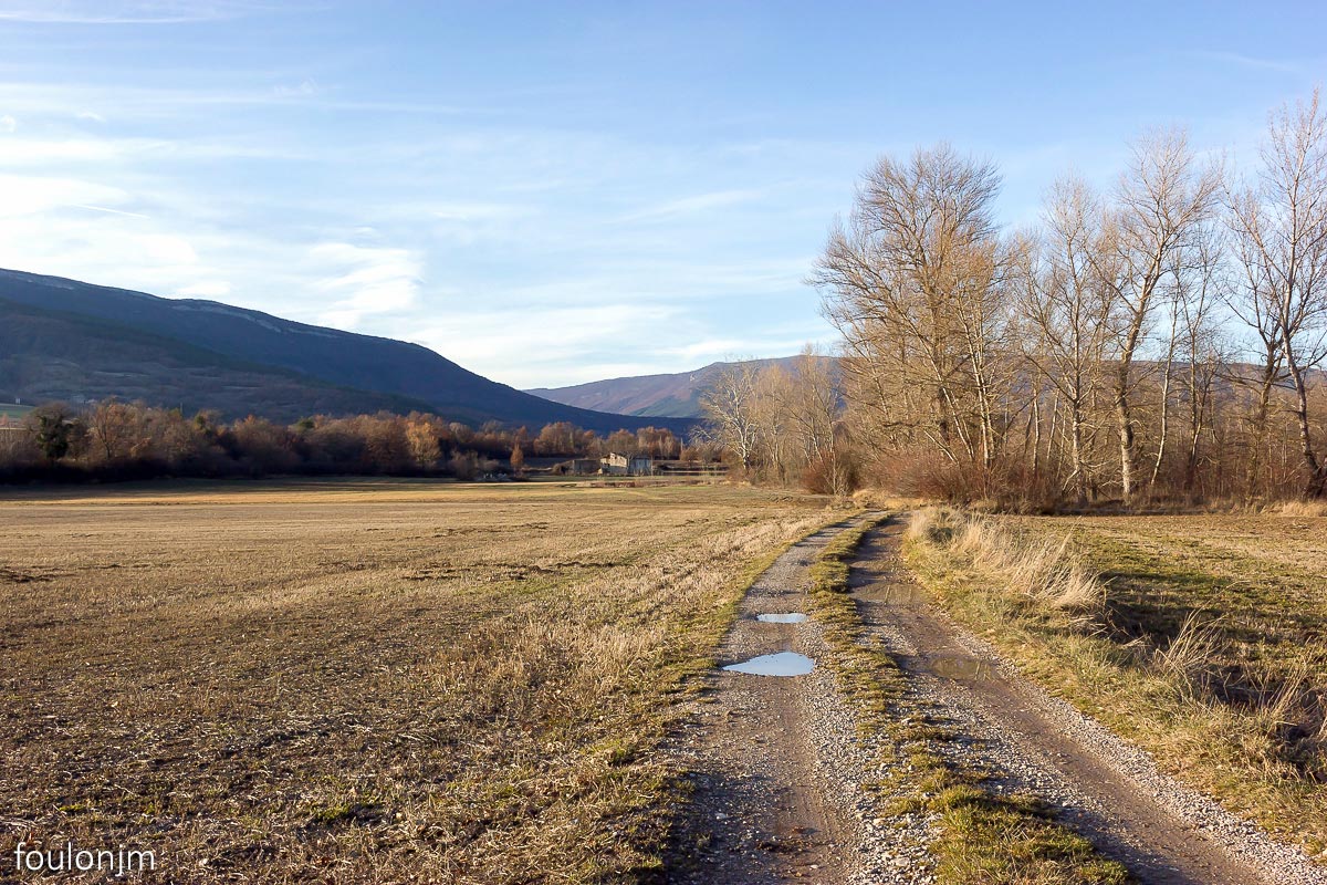 2Ferme ruinée de la Tuilière à Ribiers Au loin vers le centre, la ferme ruinée de la Tuilière que nous allons visiter