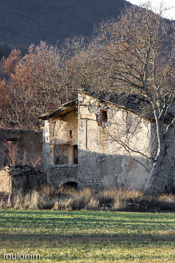 3Ferme ruinée de la Tuilière à Ribiers En arrière plan, A gauche la montagne de Saint Cyr, à droite celle de Chabre, entre les deux, les gorges de la Méouge