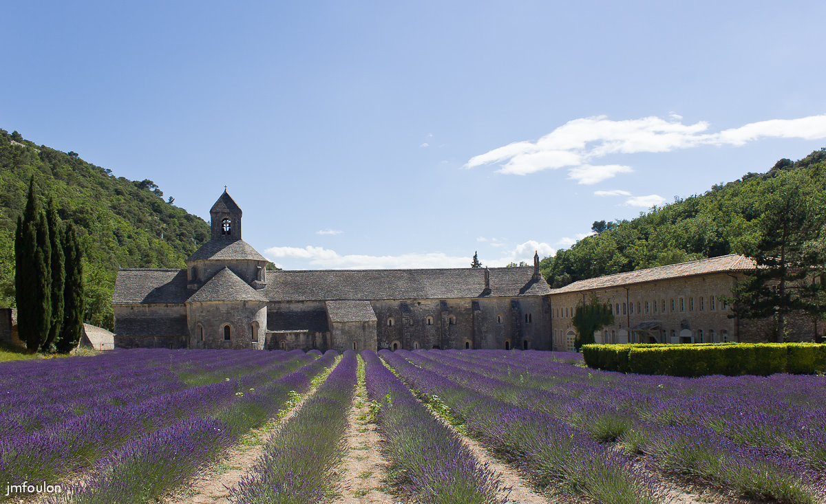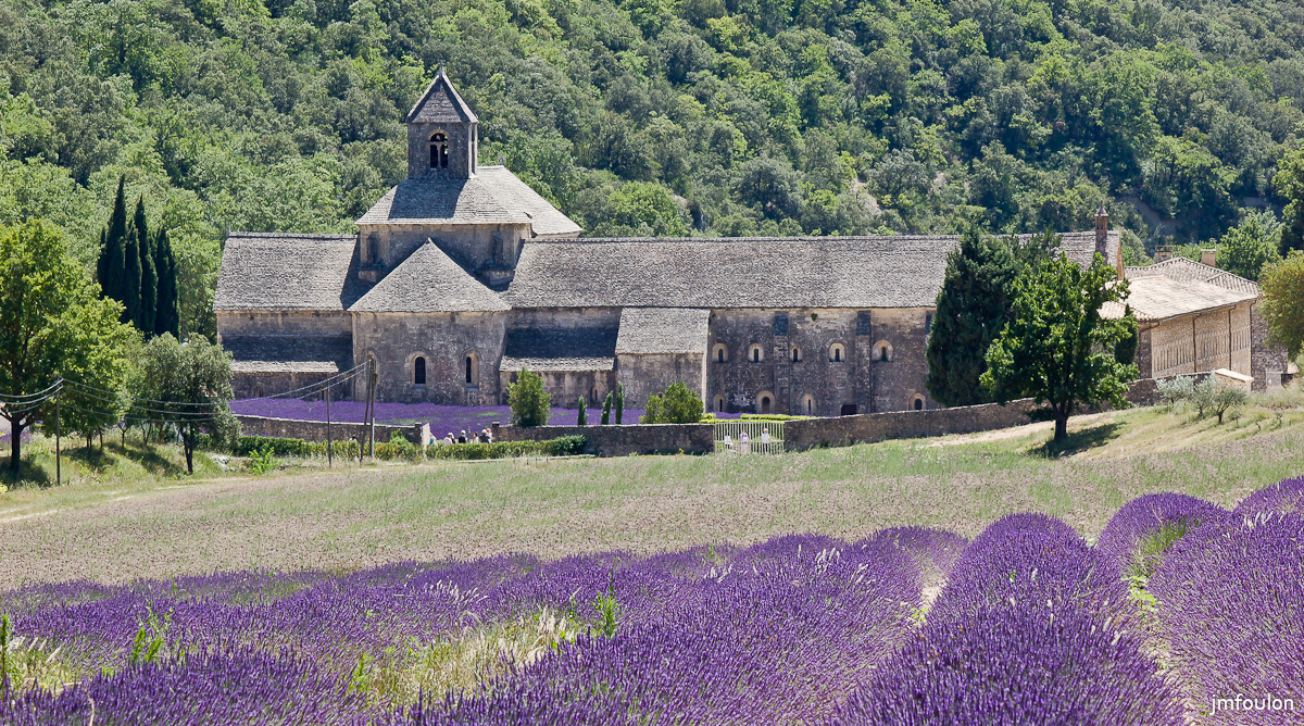 1 Vue générale de l'abbaye entourée de champs de lavande