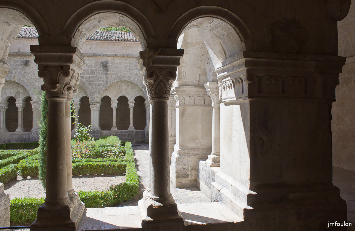 26 Abbaye de Sénanque - Le cloître. C'est le centre de l'abbaye. Lieu de passage, il relie les différentes parties du monastère, mais c'est avant tout un lieu de méditation et de lecture