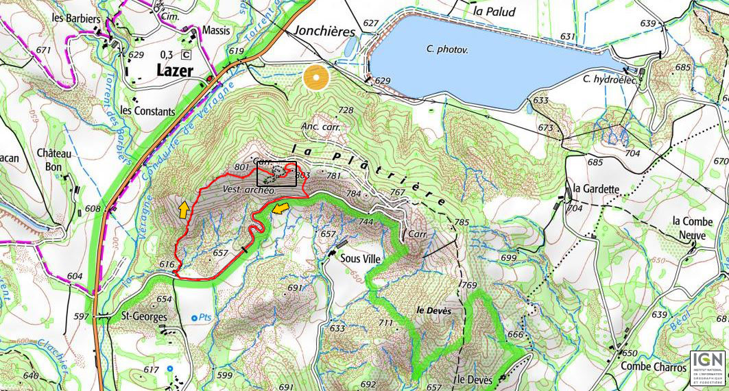 44Lazer - Vestiges du site de la Plâtrière Redescendons maintenant pour contourner le motte castrale par le Nord ...