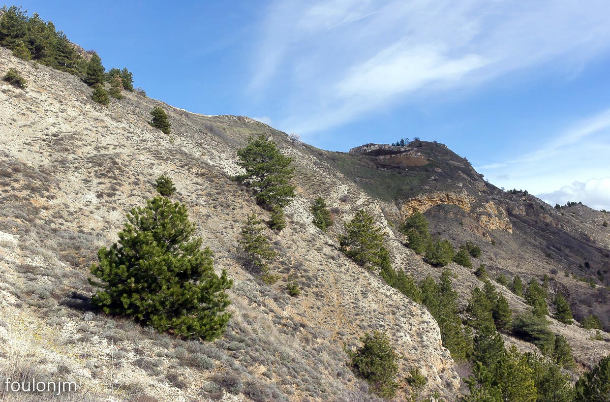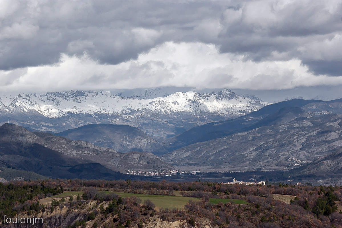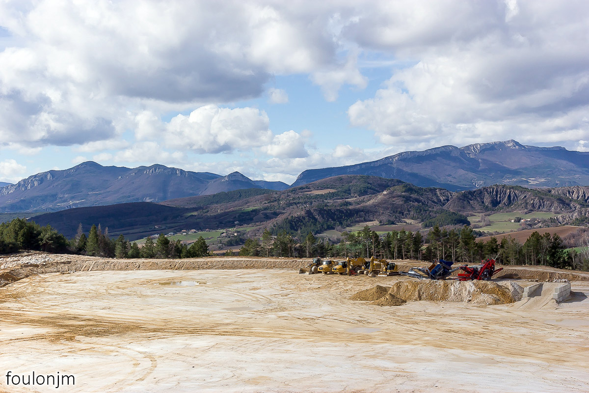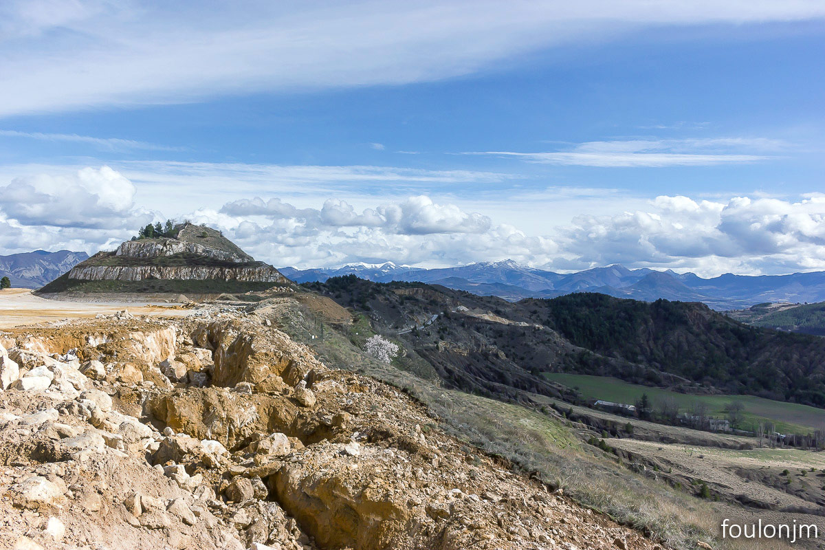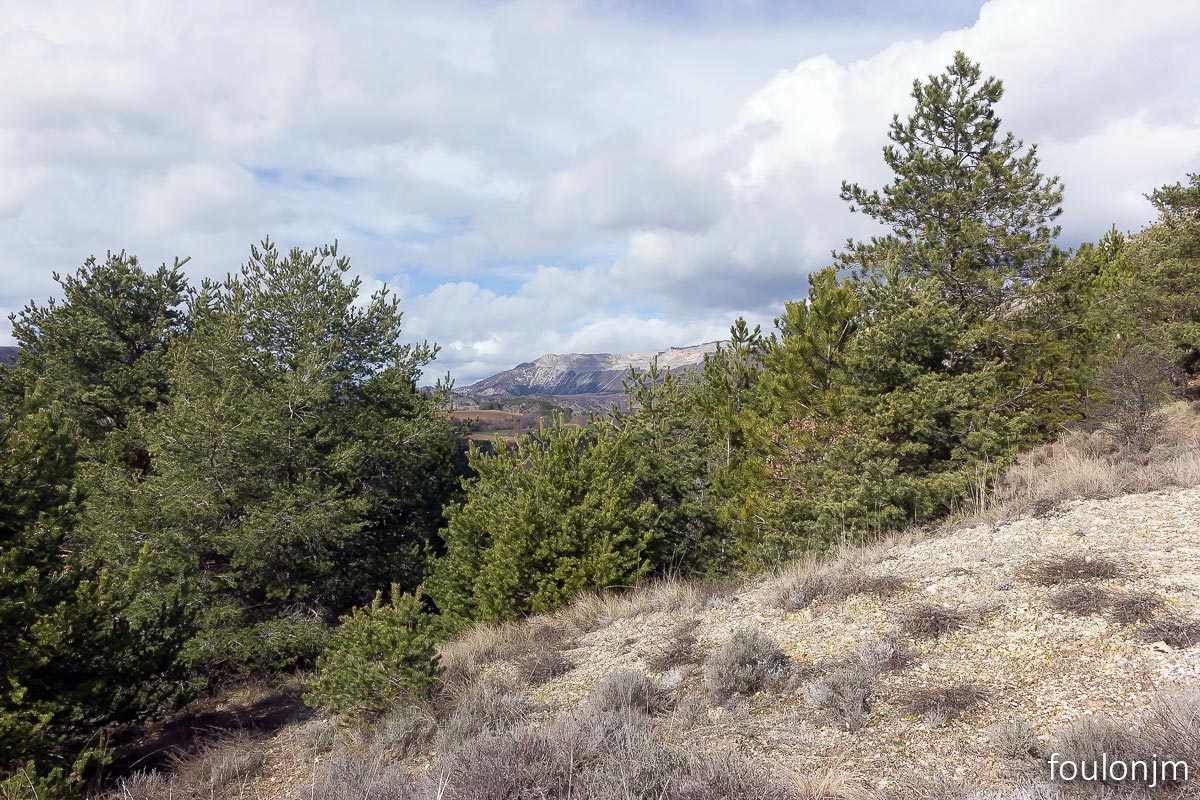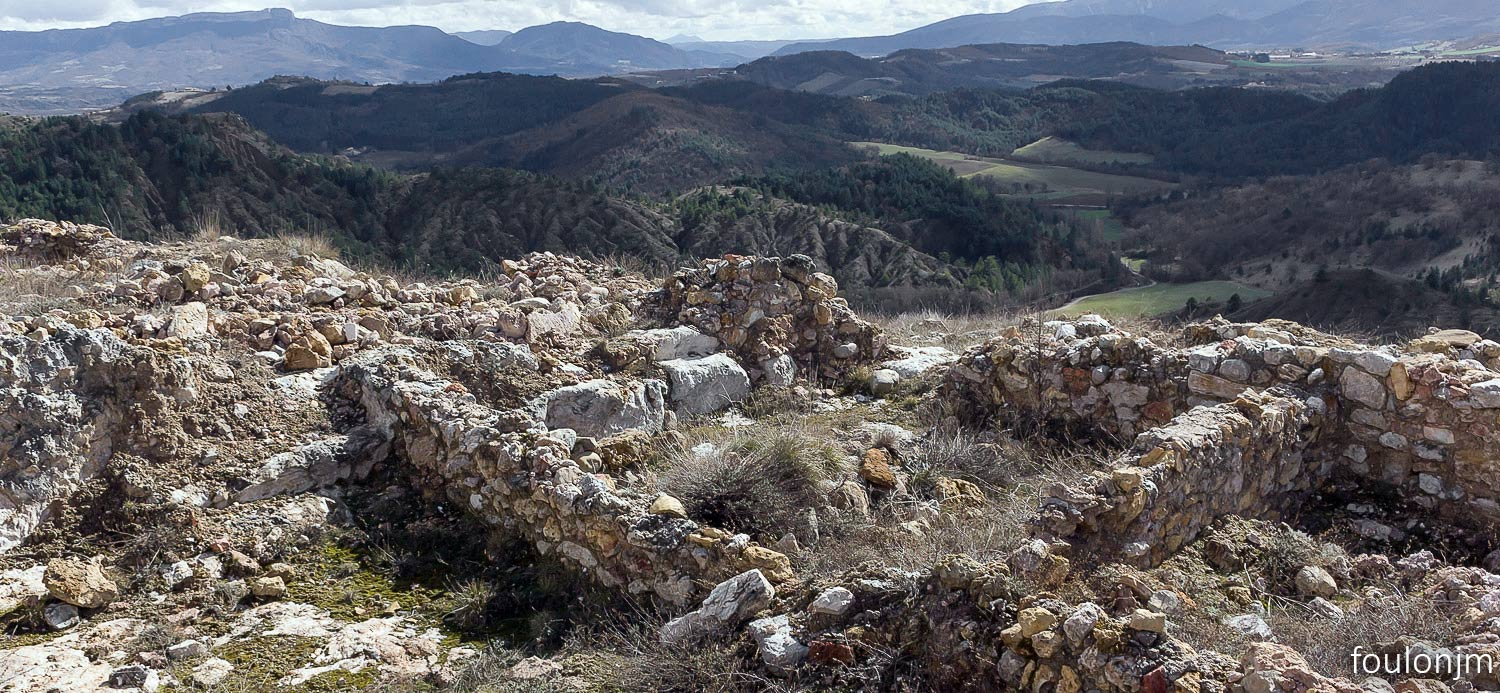 58Lazer - Vestiges du site de la Plâtrière Vue vers le Sud depuis la motte castrale. Au loin, la majestueuse montagne de Lure enneigée ...