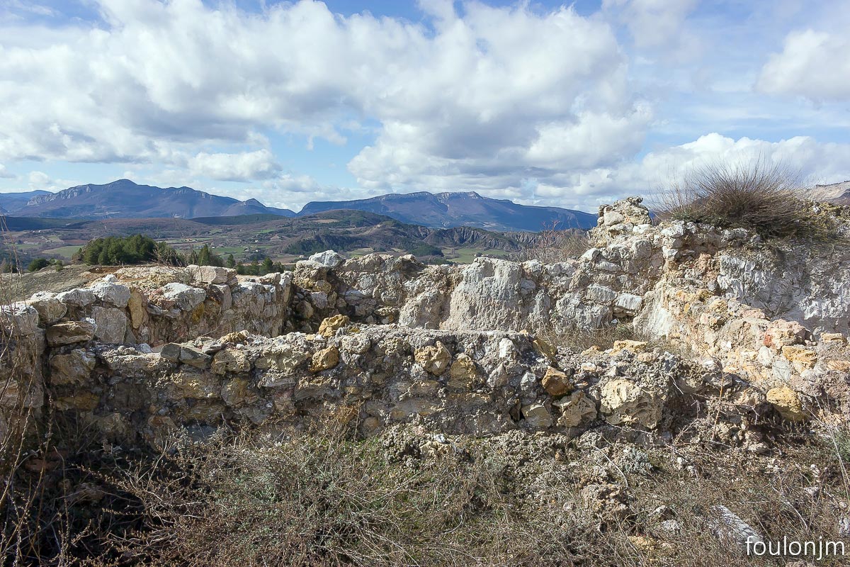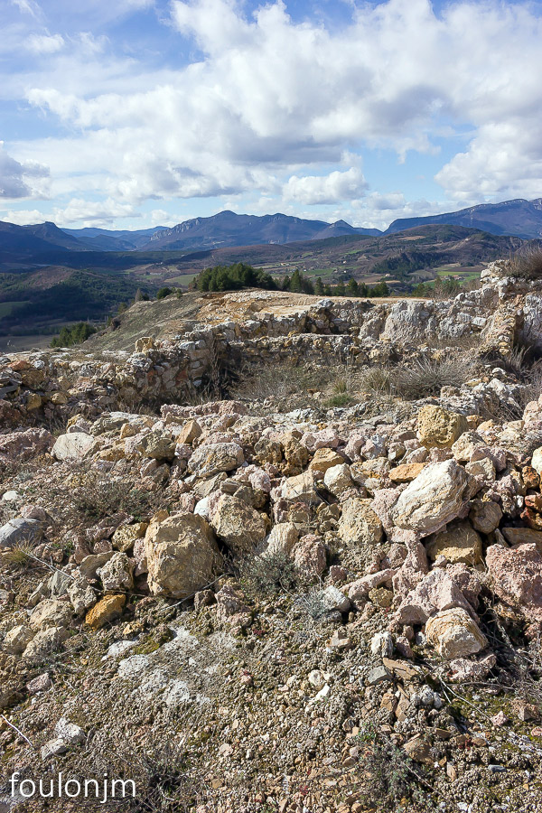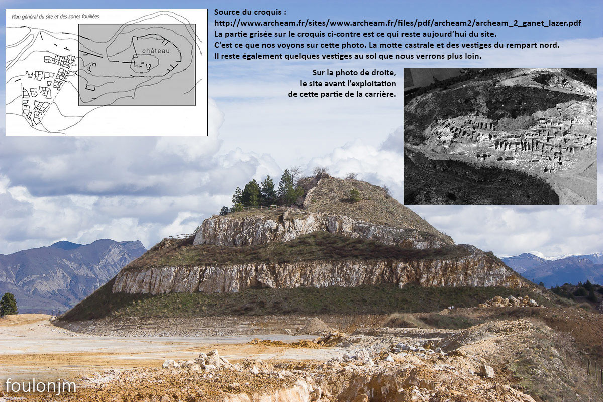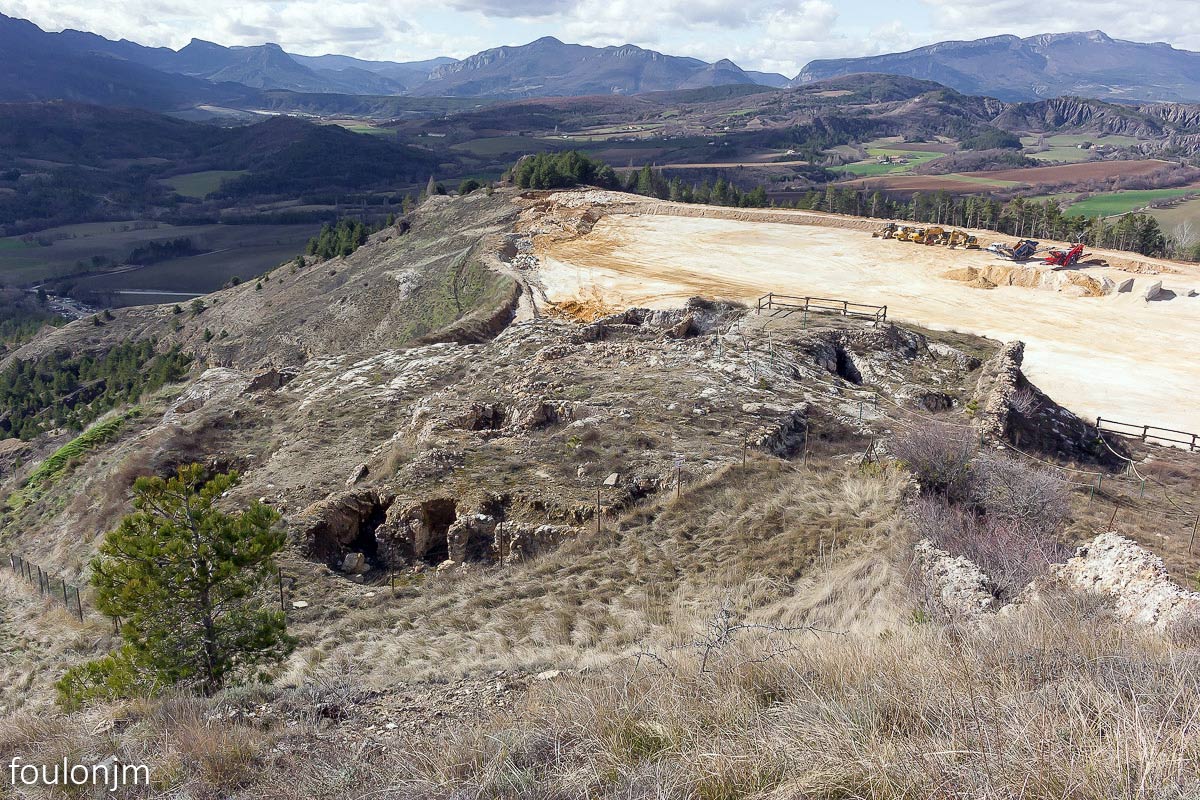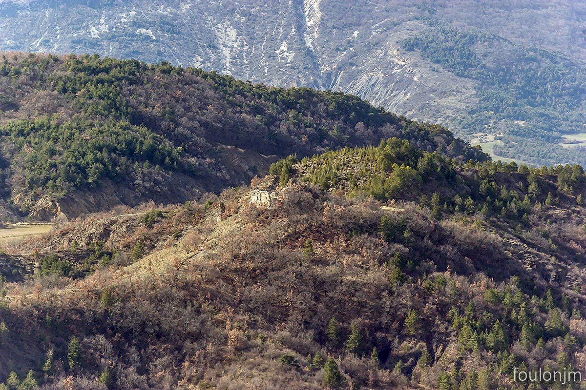41Lazer - Vestiges du site de la Plâtrière Zoom sur le château médiéval d'Arzeliers à l'Ouest. D'ici on voit aussi les châteaux d'Upaix, la tour de guet de la Saulce, les château de Ventavon et de Curbans au Nord. Un endroit statégique au XIIe siècle ...