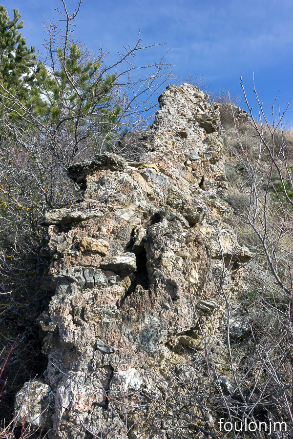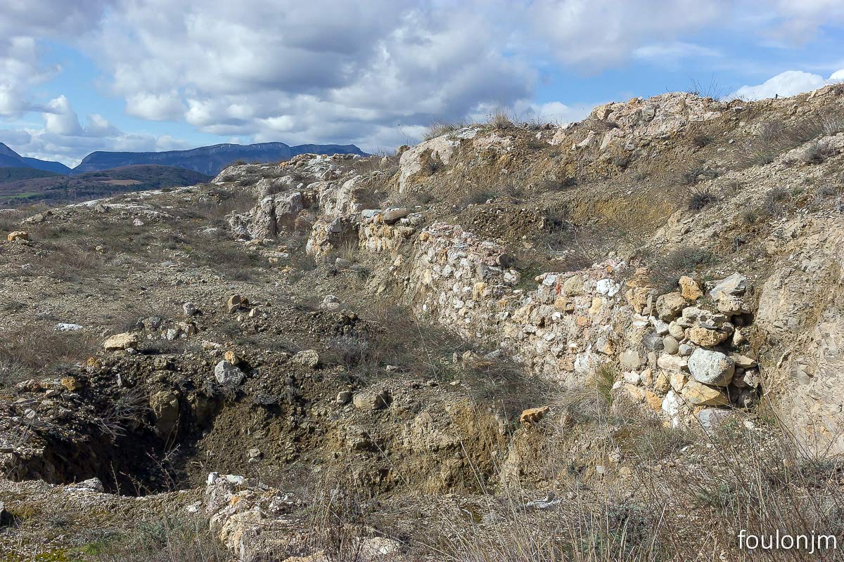 27Lazer - Vestiges du site de la Plâtrière Vestiges du rempart Nord - Le village était ceint de remparts au Nord et à l'Est. Les autres points cardinaux étaient naturellement protégés par la configuration du site ...