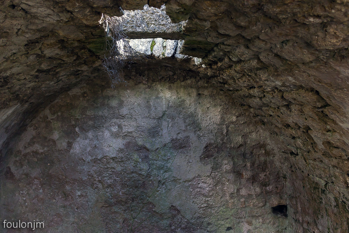 35Lazer - Vestiges du site de la Plâtrière Au sommet de celle-ci, je suis intrigué par une ouverture au sol qui donne sur un trou ...