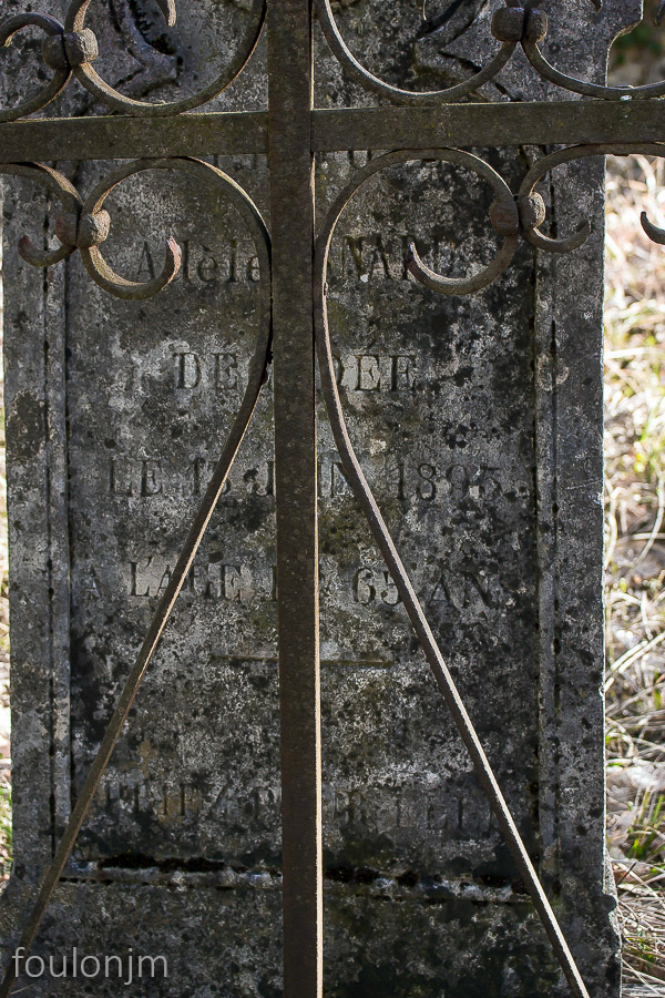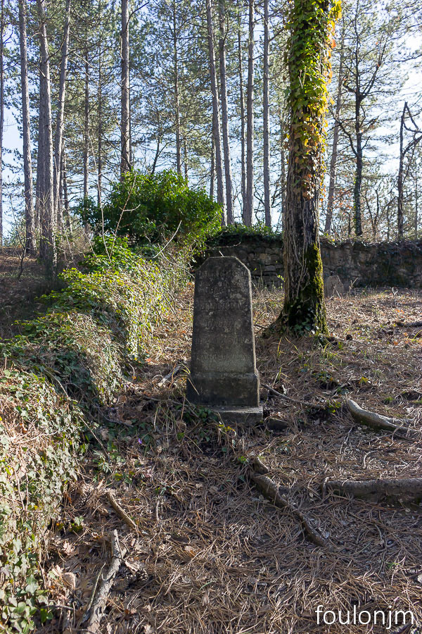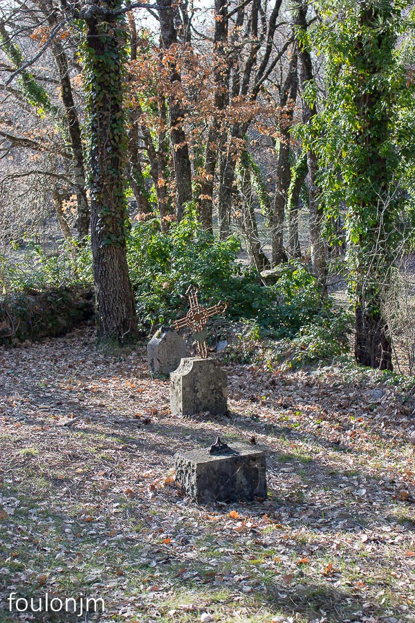 33Le Vieil Eyguians Il reste quelques pierres tombales, mais les croix de fer ont toutes été pillées. Ils n'en reste que deux, dont celle-ci ...